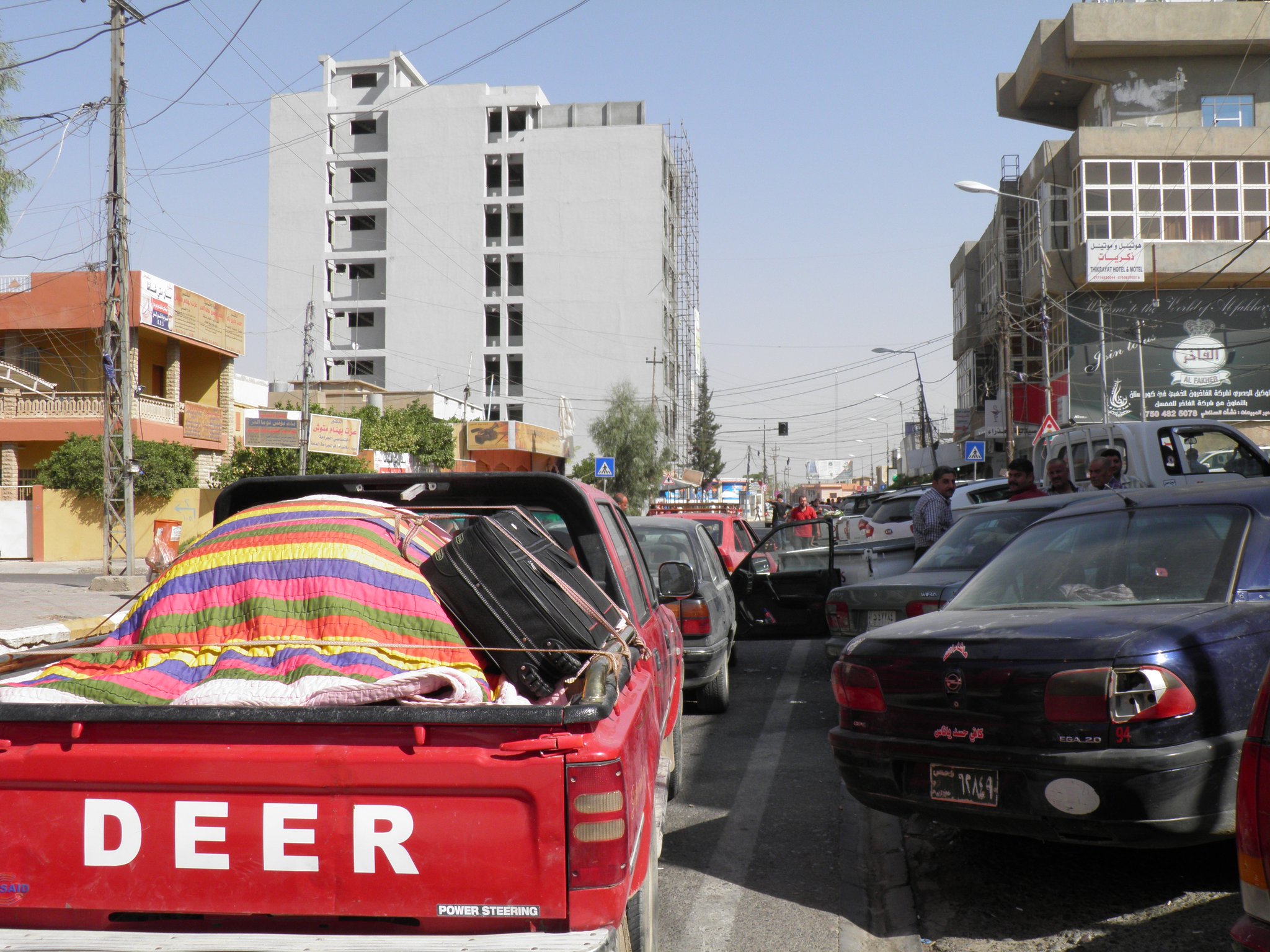 A lot of people are fleeing to Erbil now, especially from Mossul, were Christians are not safe anymore. What I see very often, that people are all packed in one truck and each of them has one