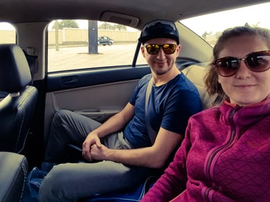 When we checked out the hostel, believe it or not, they informed me that someone found my ID-CARD! I don't know who and where but it is back with me! Thanks to this person! After all that adrenaline the journey to Sinai could start in time. Actually, half an hour early even. A funny anecdote about cultural assumptions: I ordered the taxi for 8am, assuming well that the driver probably is going to pick us up at 9am - which would have been a perfect time for us. The driver, his name is Anwar, came at 7:30am, assuming that Germans like to be over-punctual. Haha! Fair enough, so no breakfast, no problem. Heading towards Sinai feels so good: beach, palm trees, kite surfing. Security concers? Not really. Everything you hear in the media concerns NORTH- Sinai. And the travel-ban? Don't read everything. It takes 40 minutes to get out of Cairo and we passed by soms crazy construction sides. They are building an artificial government district, a capital within the capital. Also a big church with a tower just as high as the mosque near by. Crossing the toll station we drove through pure desert. Some camels here & there. A lonely gas station from time to time and some desert-huts.