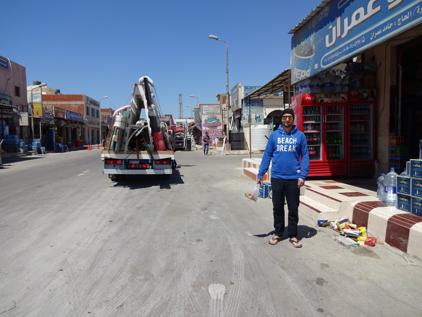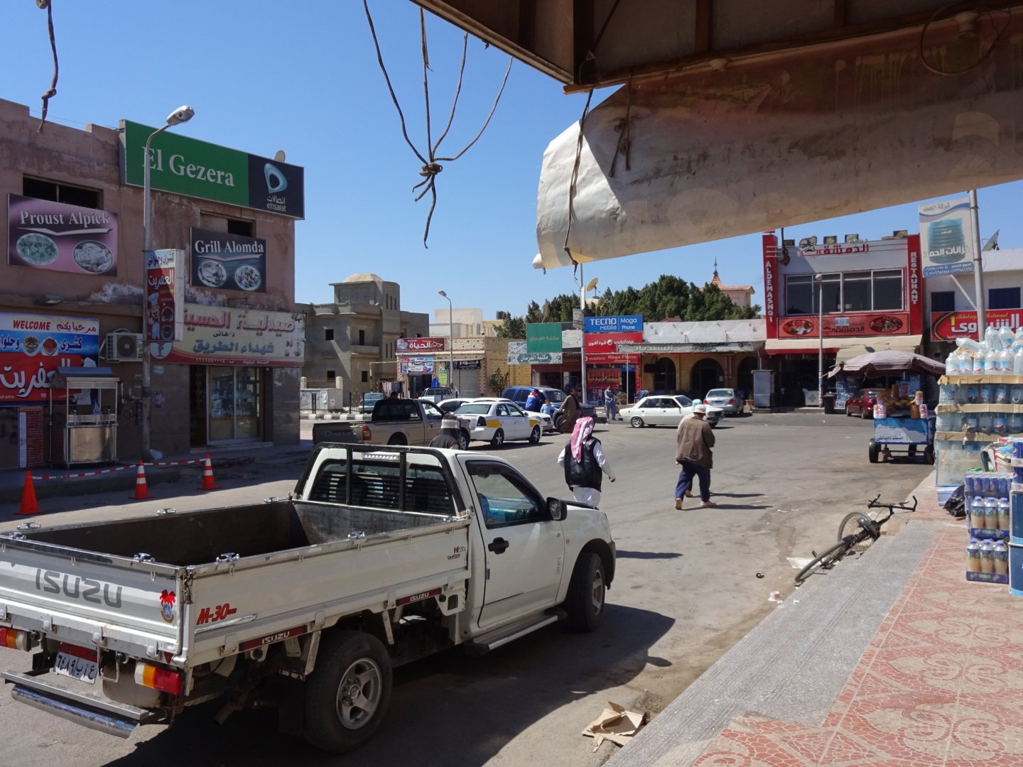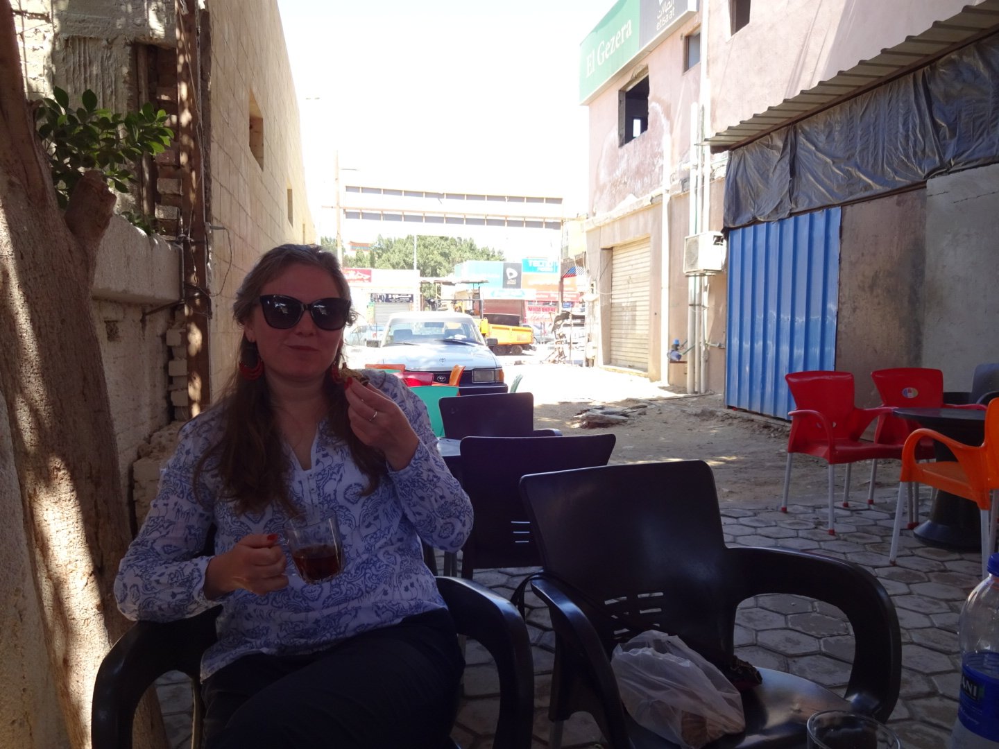 A little change from our daily lazy-routine was the trip to the city center of Ras Sudr, 30 minutes drive from the hotel. Arriving in the city we quickly realised there is no tourist infrastructure, no english-speaking people and even the official bilingual language policy of Arabic AND English changed into only Arabic. Exactly how I like it :). The city is small, there are a few mobilephone shops, supermarkets, drug stores. The plenty cafes, tea shops and restaurant give the city cozy flair. I had my first sugar cane smoothie and we had a wonderful lunch: falafel, Arabic salad, hummus, lamb and vegetables. We haven't been the first tourists in town, that I can tell from the people's behaviour. Maybe a bit reserved but never unfriendly. Even opposite: nobody tried to take advantage of us in terms of money and prices and they have been incredibly helpful to find vegetarian food.