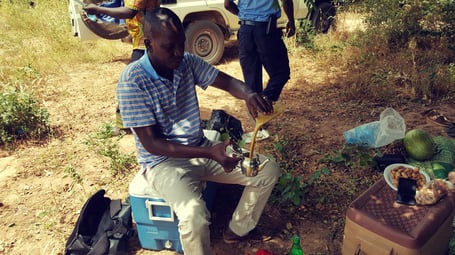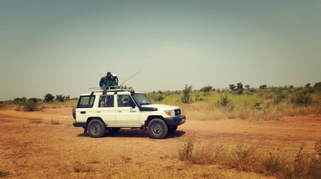 We left Niamey early in the morning with three cars incuding drivers. The importance of the drivers was shown once we were in the terrain: driving over stones, sand and through wild bush-land was a challenge - even for experienced drivers. After one hour drive from Niamey, we reached the center of the association that protects the giraffes. After a short presentation of the team, we started our search for the giraffes. After a relatively short time, we came across a young herd but they were not in the mood to welcome visitors, so they disappeared quite quickly. Later in the afternoon, we were incredible lucky. Our guides, who were comfortable on the roof of our car, found another herd out of 19 animals, including very youuung ones. In the afternoon, we took the road back to Niamey – all very satisfied and happy.
