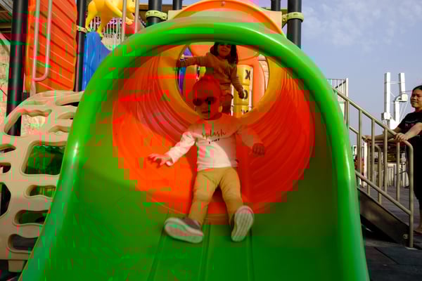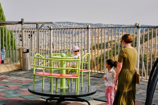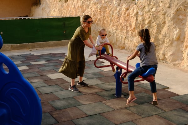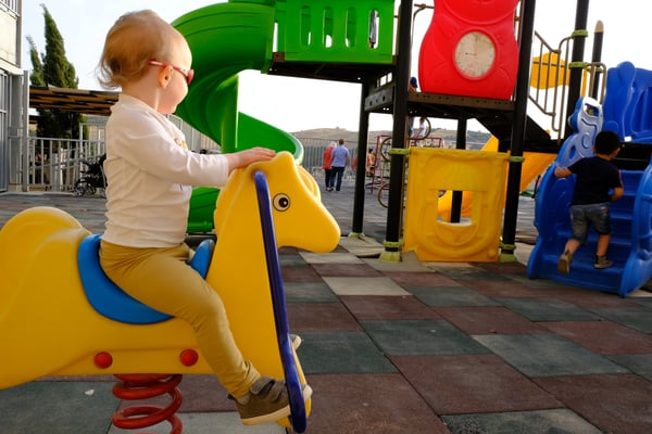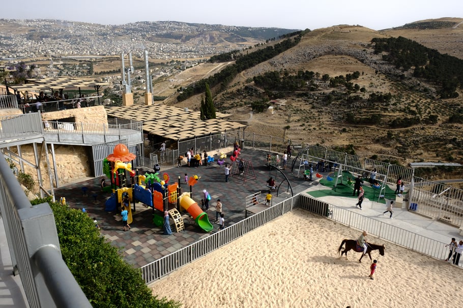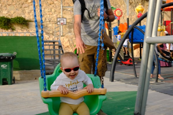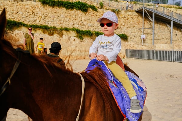 Als der Manager erfährt, dass wir noch ganz neu in Jordanien sind und es auch hier im Wald unser erstes Mal ist, schenkt er Johanna den Eintritt zum Kinderspielplatz inklusive Pferdereiten. Wow! Ich habe überhaupt nicht damit gerechnet, dass sich Johanna alleine auf das Pferd setzen möchte, aber sie ist ganz fest entschlossen.