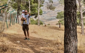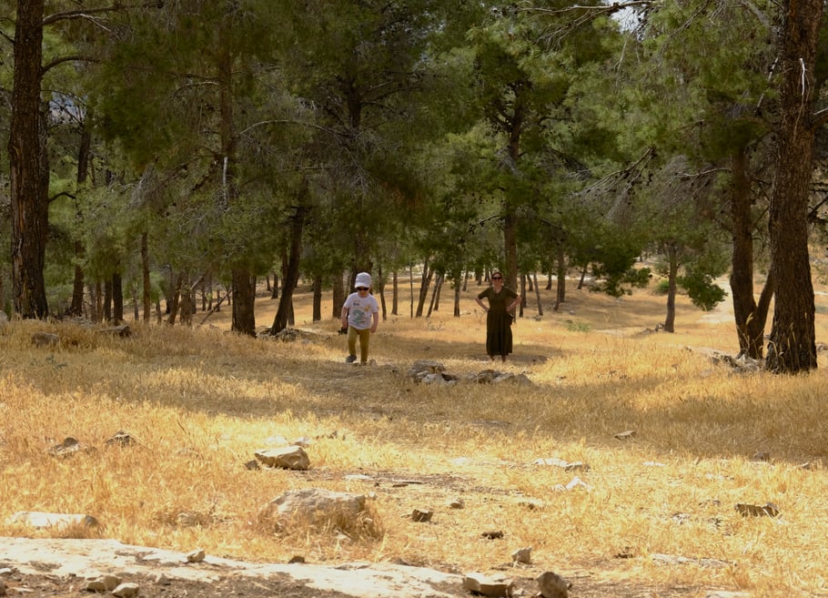 Die Suche nach einem freien Plätzchen treibt uns bis zum höchsten Punkt des Berges. Weiter geht es nicht mehr, ein Tor verschließt hier die Weiterfahrt. Es ist so windig hier, dass Johanna ihre Mütze teilweise festhalten muss. Viel kühler als in Amman ist und sooooo gut riecht es hier. Wir wandern einen kleinen Weg tiefer in den Wald hinein. Wunderschön. Tobias träumt davon, hier noch einmal vor Sonnenaufgang mit seinem Mountainbike hinzukommen.