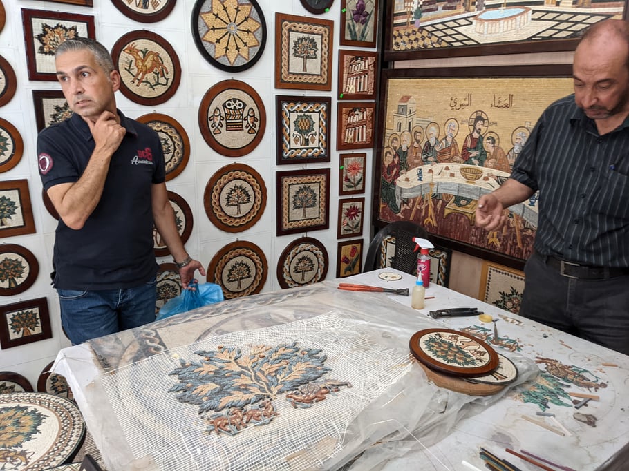 gestalten - so wie es hier geschehen ist. Kein Wunder, dass es in Madaba auch die größte Mosaik-Schule im Nahen Osten gibt. Zwei Jahre dauert die Ausbildung