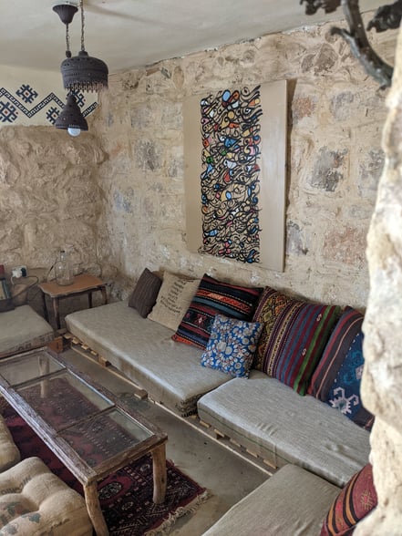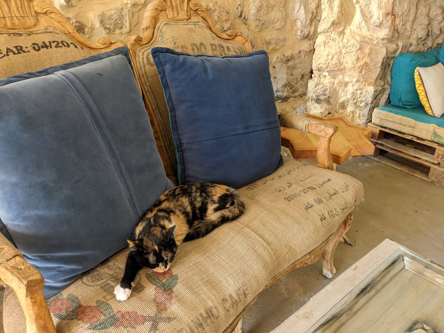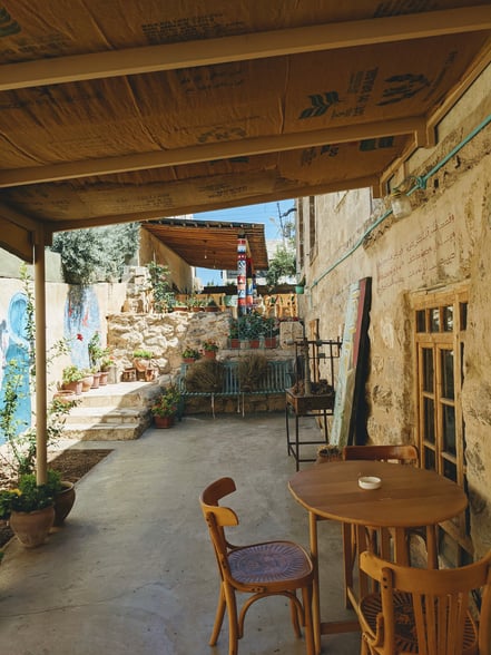 Ein neuer Erkundungs-Streifzug bringt uns nach Madaba. Die Stadt liegt 30 KM von Amman entfernt und ist bekannt für ihre gut erhaltene Mosaike aus dem byzantinischen Zeitalter. Diesmal kommen wir aber aus einem ganz anderen Grund. Über Freunde von Freunden hatte ich den Besitzer eines veganes Cafes kennengelernt, das gleichzeitig auch ein Buchladen ist. Und zwar ausschließlich Second-Hand-Bücher. Was mich besonders fasziniert, dass dieses Konzept außerhalb der Hauptstadt, in einer kleinen Stadt, aufgeht!