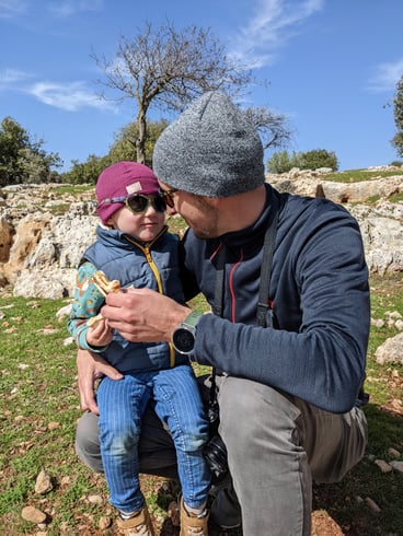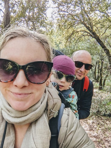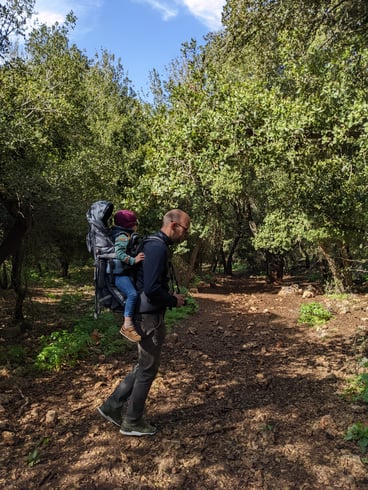 Mit im Gepäck sind reichlich Snacks, Früchte und ein paar Süßigkeiten, um ein kleines Picknick im Wald zu veranstalten.....Und um Johanna in ihrer Trage bei Laune zu halten!