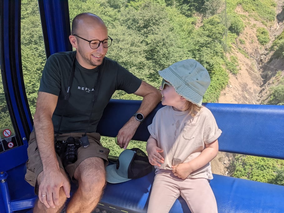 When in Azerbaijan, you don´t wanna miss riding a cable car up to the mountains. This gives you the chance to reach high altitude without getting exhausted actually. And Johanna loved it too. It was her first time, and after being a bit scared, she couldn’t get enough. There are many places all over Azerbaijan to ride a cable car. We did it in Qebele and with a total of 4 different cable cars you reach up to 2.000 meters. I highly recommend it.