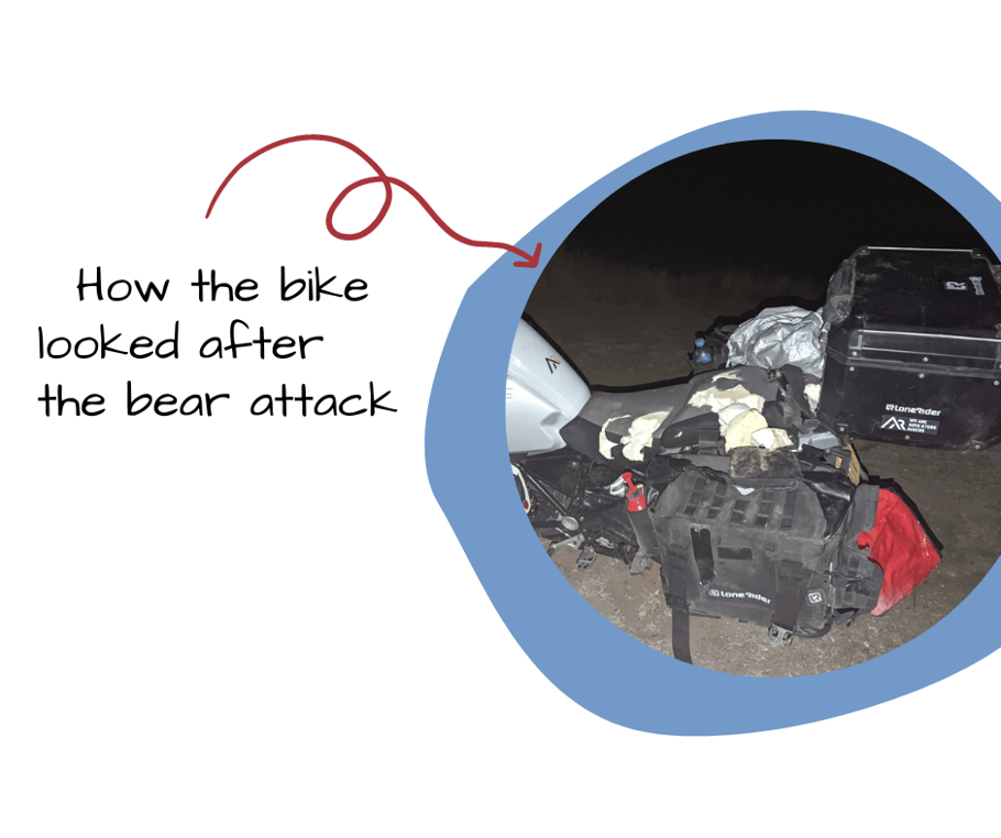The couple has been on the road for four months. You've been through some sticky situations. After an accident in Albania, Lucie had to be picked up by the ambulance. (See the vlog here ) In Georgia, her motorcycle slides over the edge of a cliff. Only with their combined weight could they hold the bike until other men came along and were able to pull the bike back onto solid ground. In Turkey, a brown bear attacked the motorcycle at night, literally tearing it into pieces. The next morning, the two put their bikes back together like a puzzle. Much could be repaired, but the bite marks on Matt's helmet are still visible. "We'll take a souvenir from each country with us," says Lucie.