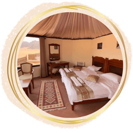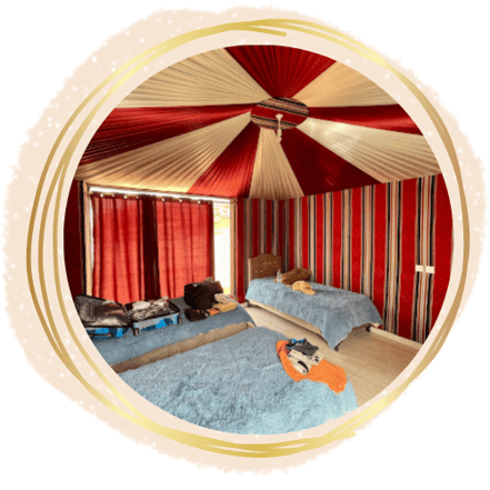 Rooms: 3 bed room available, private bathrooms, 25 JD per person per tent.