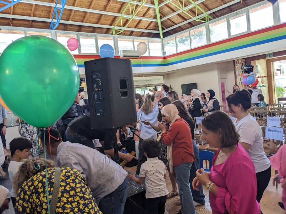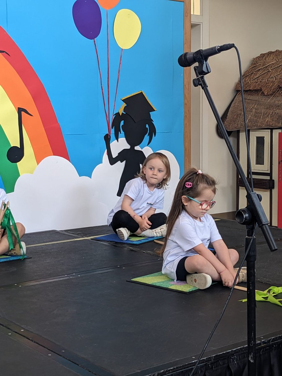 There was really a whole party going on....After the 1.5 h show, parents went to the stage too, in order to celebrate. Music and balloons and lots of good vibes. The parents were also invited to a buffet afterwards. And it was very nice organized that all together could sit outside on the (artificial) grass.