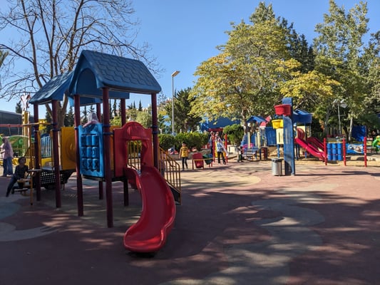 There are two playgrounds, one little amusement park. Really suitable for small kids. A tiny paddle-boat lake (in summer) and also very suitable for small kids. Also, there is space for cultural events, but this depends on the schedule and is not every day.