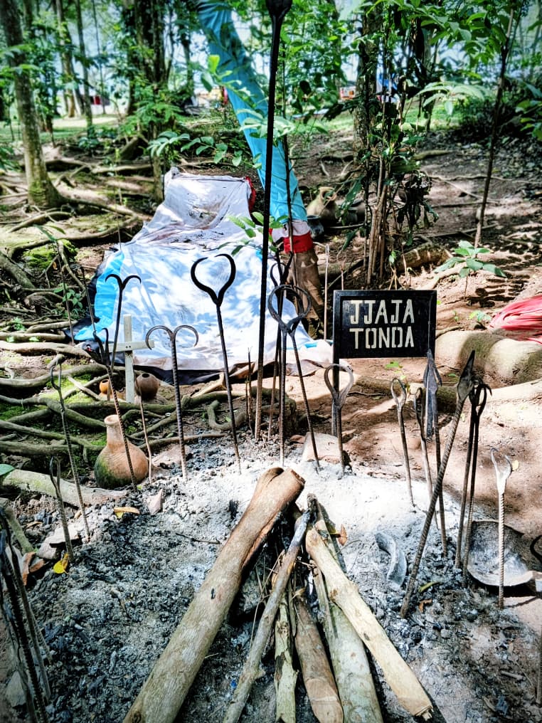 It is a dark room. Only a small fire allows outlines to be seen. Palm oil is regularly poured onto the fire, creating a pleasant smell. Various offerings—such as jewelry, fruit, weapons, and money—are arranged in the center of the round house. I placed my hands on an artwork made of shells, and then prayers began. A pilgrim next to me explained: “You must never ask for anything bad or good for others. You may only pray for yourself. For example, you can ask for more money, for health, or for a peaceful relationship.” I had to leave the king’s house walking backward, just as is done in Buddhism or Islam.