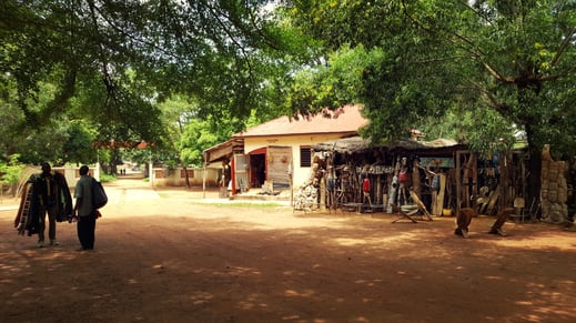 Natitingou has one spot where you can easily get rid of a lot of money.....the "Village Artisanal" where international artists offer self-built instruments, jewelry, traditional African decoration, clothes and paintings. We went on a huge shopping-tour and bought a lot of stuff for our house in Fada. Our favorite gallery is probably Joseph´s one, who comes from The Gambia, and offers stunning paintings. Once our car was filled with beautiful new things, we set off to Burkina. Unfortunately, we...