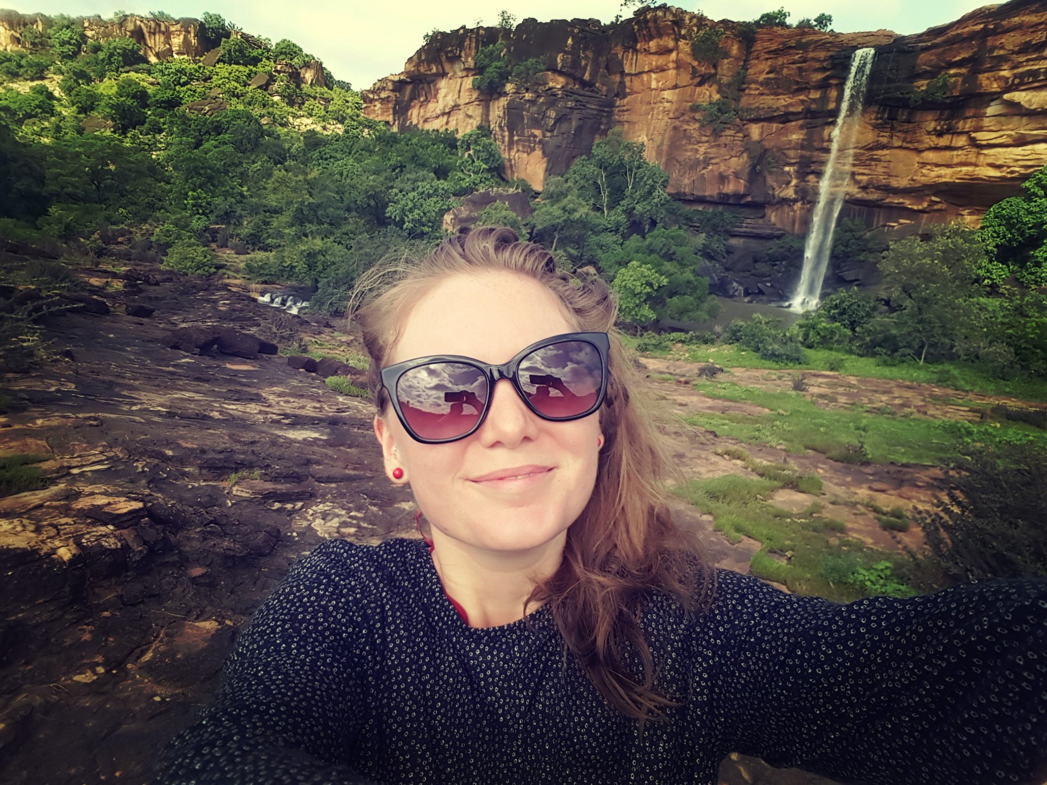 From Mahadoga, we continued exactly 7 Kilometers further until we reached the road-sign of "Campement Kindi Kombou". We left the car on the street and followed the small path by foot. It is quite a journey t reach the waterfall and whenever you think "this might be the wrong track" you have to continue. After a 40-minute walk, we could finally see the waterfall. Bit of disappointment that we couldn't take a swim. But the waterfall welcomed us with a dead crocodile, that we found next to the rocks. However, it is an absolutely wonderful, peaceful place for a picnic or a sunbath or a hike.