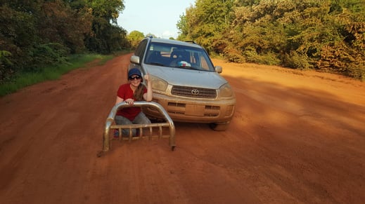 Reaching Partiaga, we thought we can find the waterfalls straight away if we continue. So we went deeper inside the Gobnangou valley. It became more rural, more difficult to drive (through streams and over mountains). Of course, there were no restaurants anymore. Very quick it became dark and we realized that our decision was wrong! The road was as bad, we even broke our bulbar. There was no way of return. We somehow managed, even though we reached Diapaga by night, not knowing where to stay, super hungry and exhausted. I don´t recommend this route to anybody, so I rather tell how we woud do it next time: